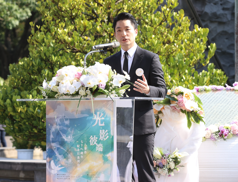 蔣萬安致詞時表示,再次以台北市長的身分來到228紀念活動,心情依舊是肅穆與誠懇,歷史的傷痛未曾遠去、都有責任不斷地反思與銘記。他堅信民主、開放與多元的價值,重視並且正視歷史過往、促進對事實完整理解,才能推動社會進步,「身為台北市長,我再次為當年的228事件,向所有受難者與家屬表達最深的歉意」。