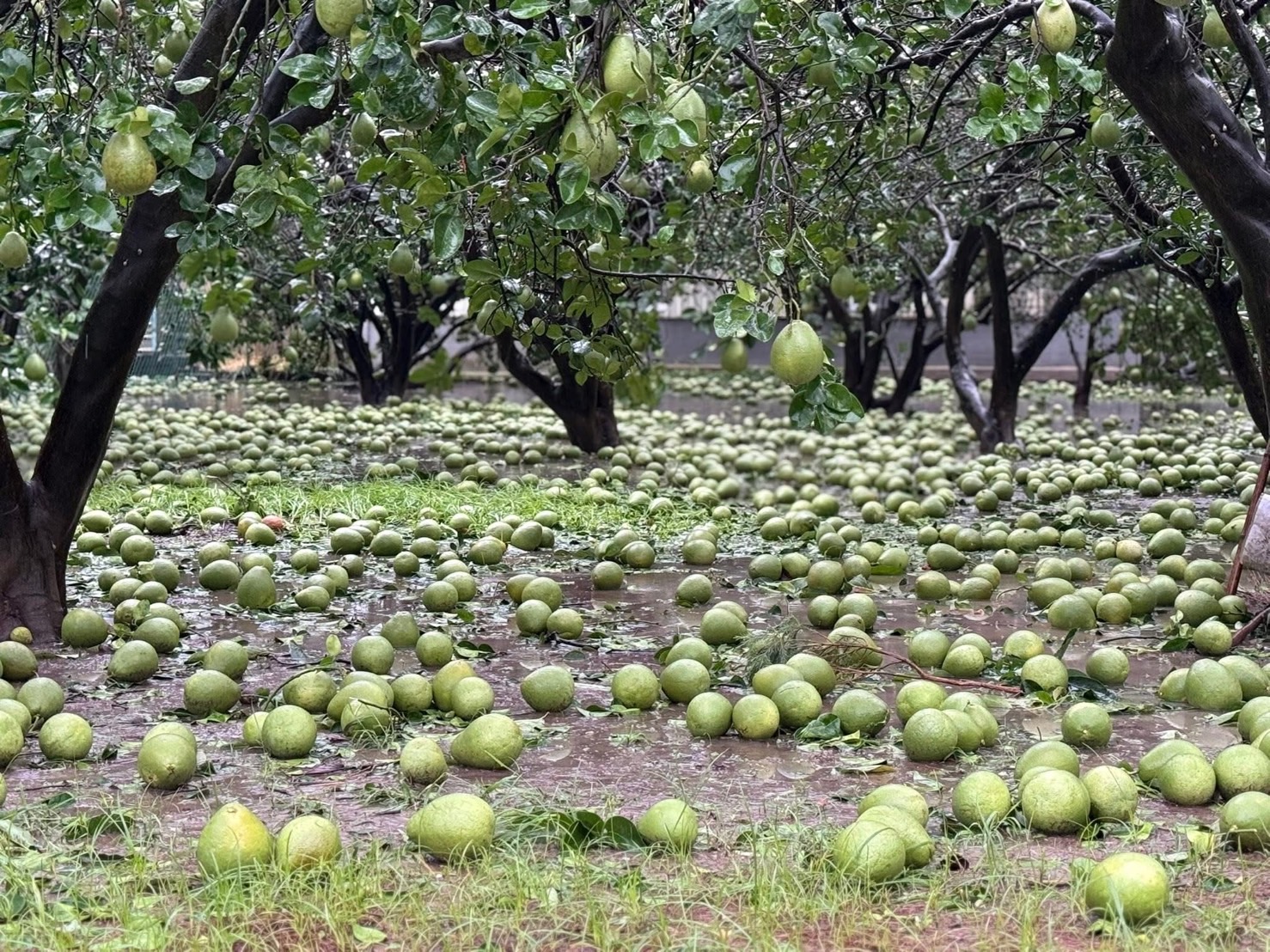 另一方面,台南麻豆也傳出農損災情,麻豆盛產的文旦現在已進入結果期,預計再一個月就可以陸續上市,但遇到「丹娜絲」颱風肆虐,很多文旦被吹落在地,當地果農表示,現在還留在樹上的只剩下2成,損失慘重。