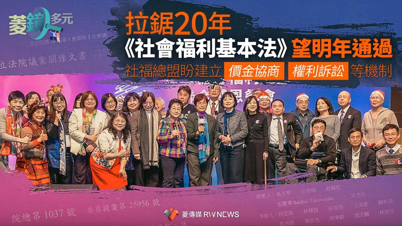 (記者單蔓婷/台北報導)不管藍綠誰執政,《社會福利基本法》立法爭論拉鋸20年,去年3月立委吳玉琴提出「民間版」草案待審,時隔20個月,行政院總算於日前提出對案。台灣社會福利總盟(社福總盟)呼籲立院朝野各黨團積極溝通協調,盼能在明年(2023)順利三讀。