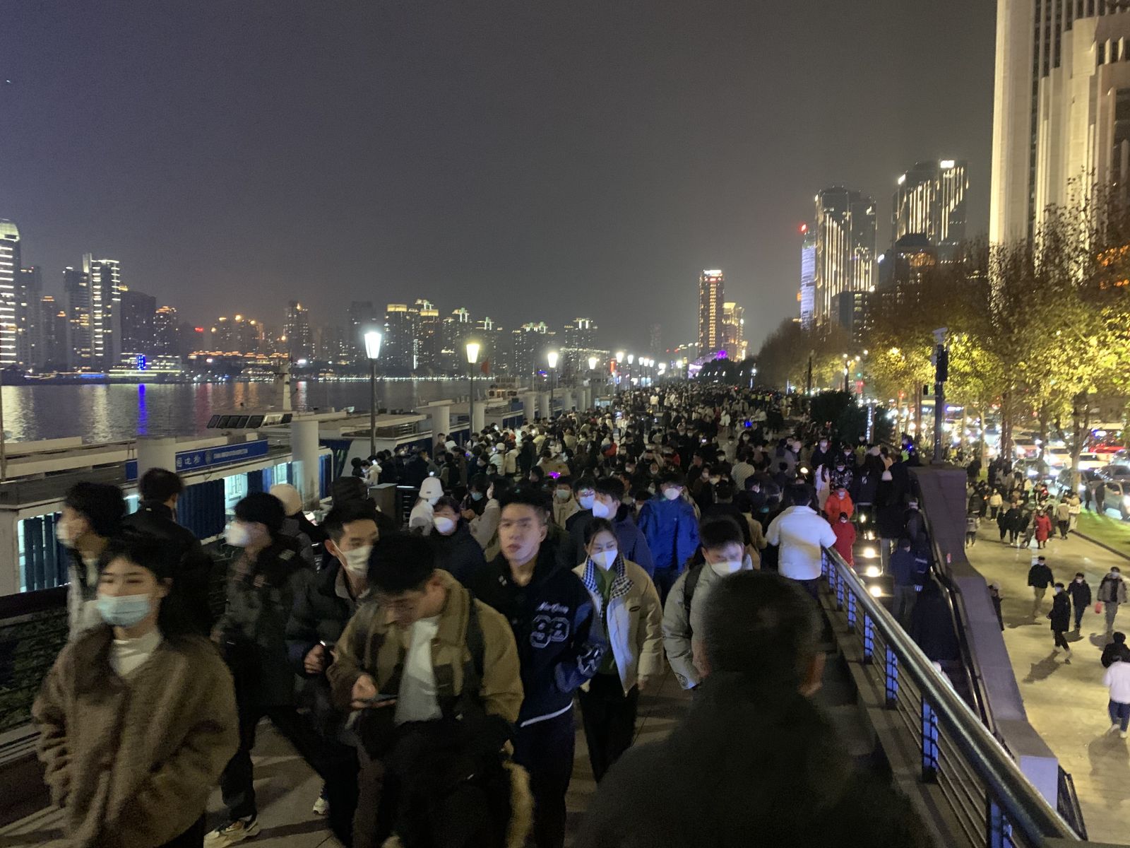 我們跨年夜當晚在豫園與外灘目睹這一刻,因為沒有控管與統計,沒有人知道其中有多少比例的人還在確診中,有多少人會因為這一晚被感染而確診。